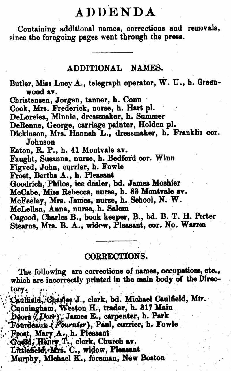 WOBURN CITY DIRECTORY 1884 FOR NAMES Z