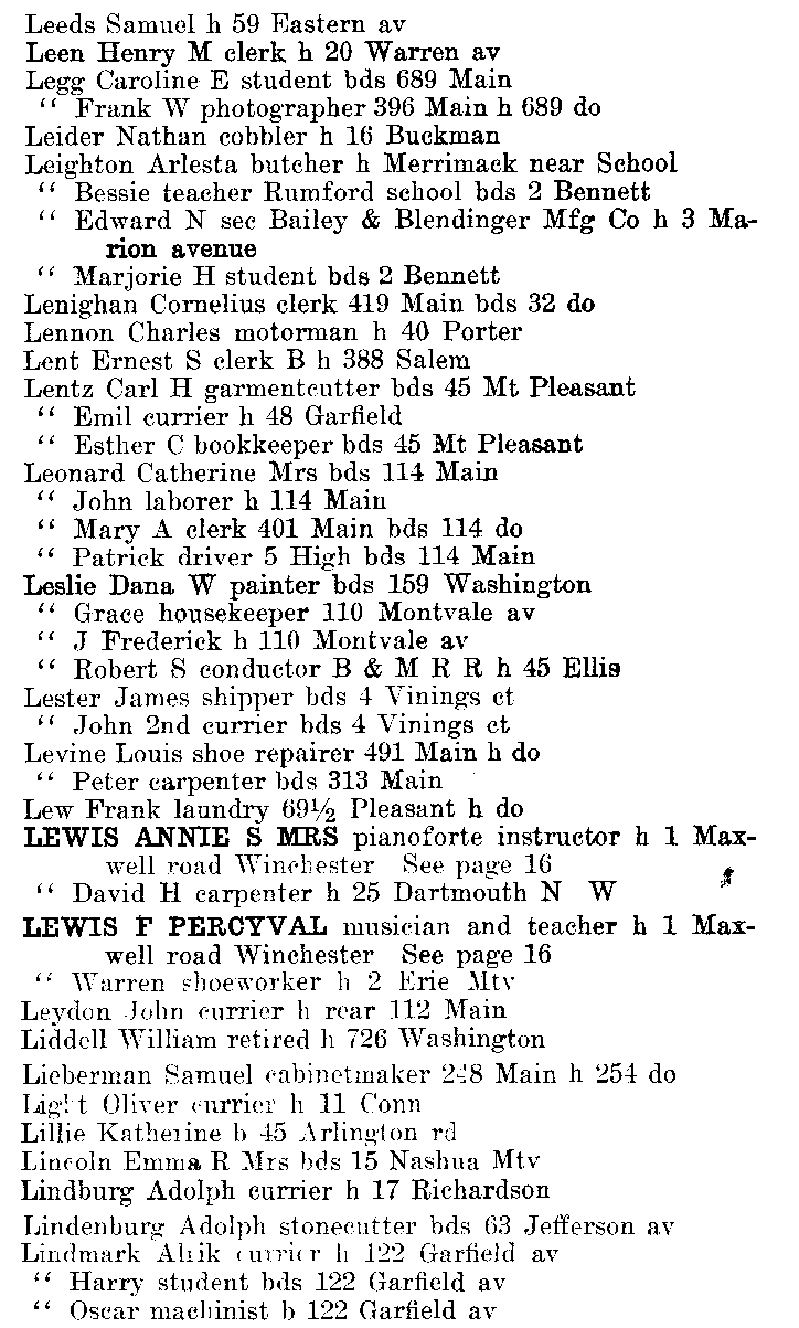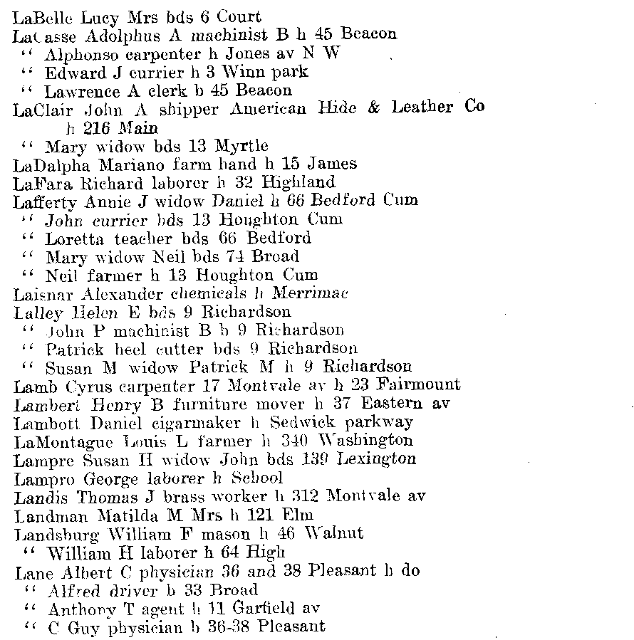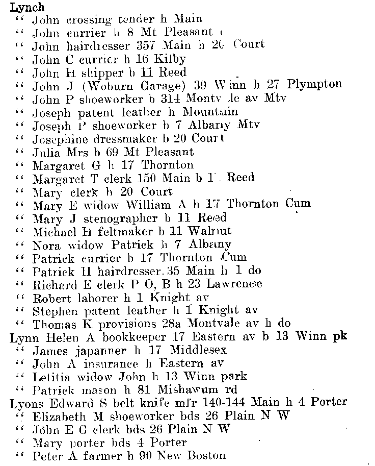 WOBURN CITY DIRECTORY 1915 FOR NAMES L