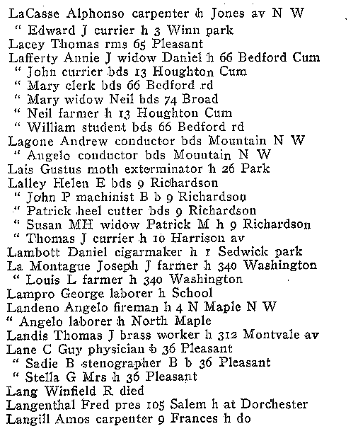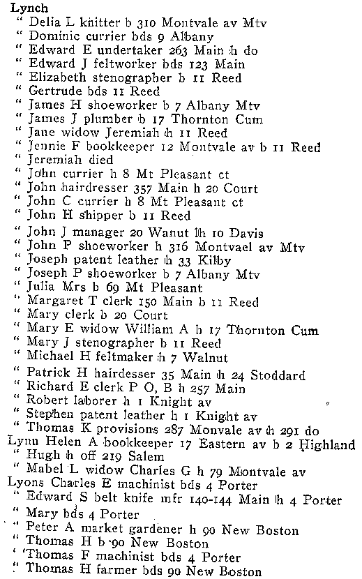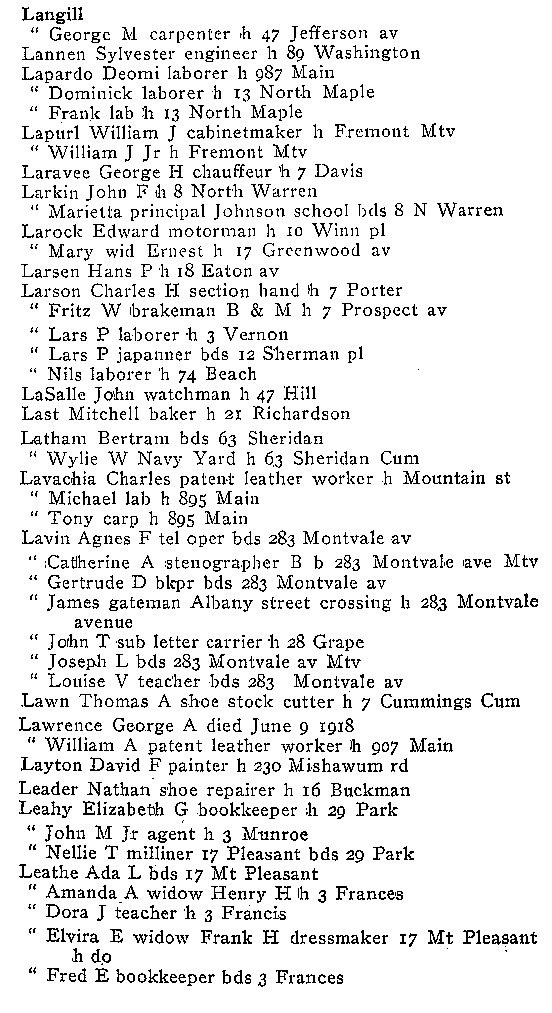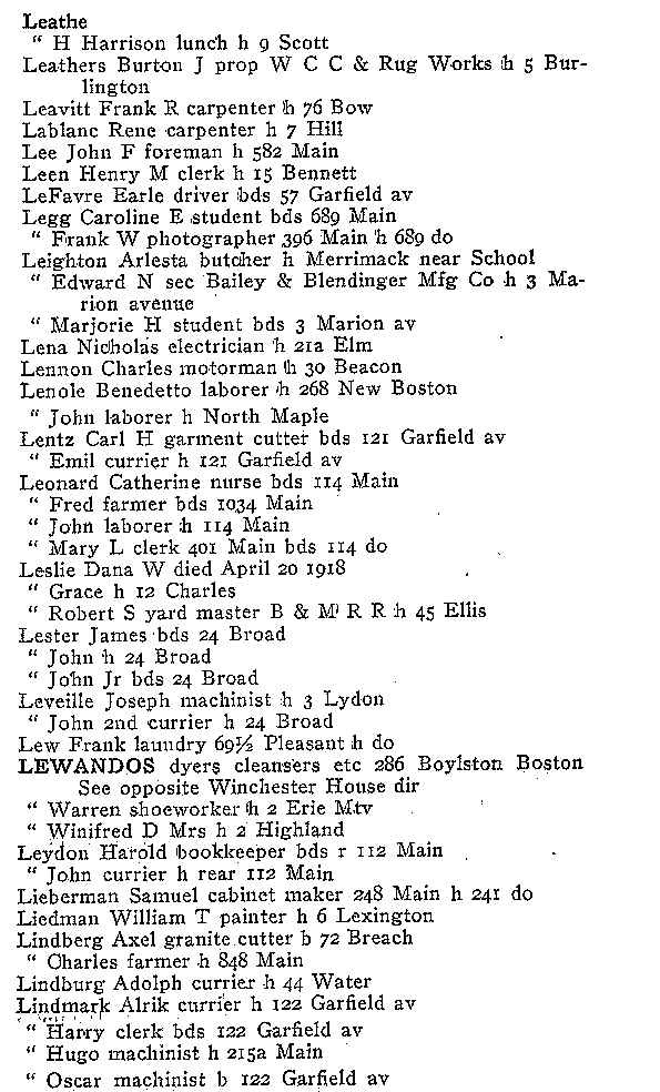 WOBURN CITY DIRECTORY 1919 FOR NAMES L