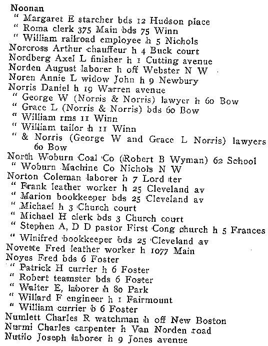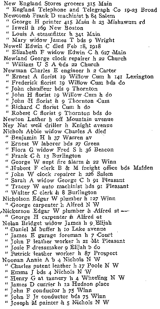WOBURN CITY DIRECTORY 1919 FOR NAMES N