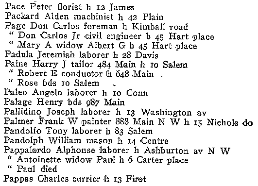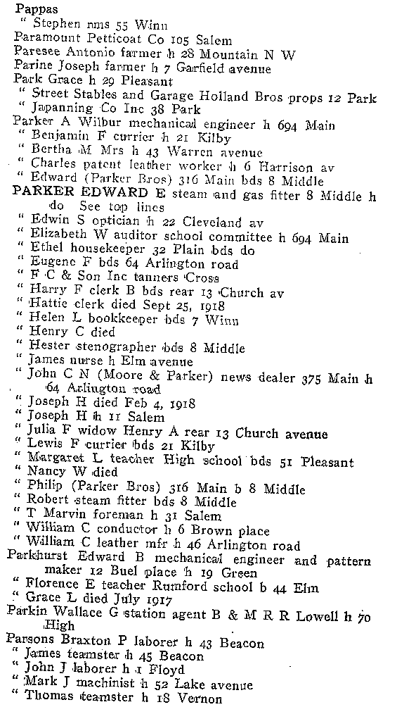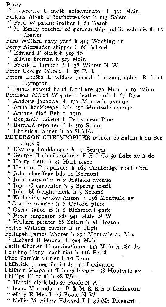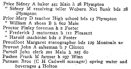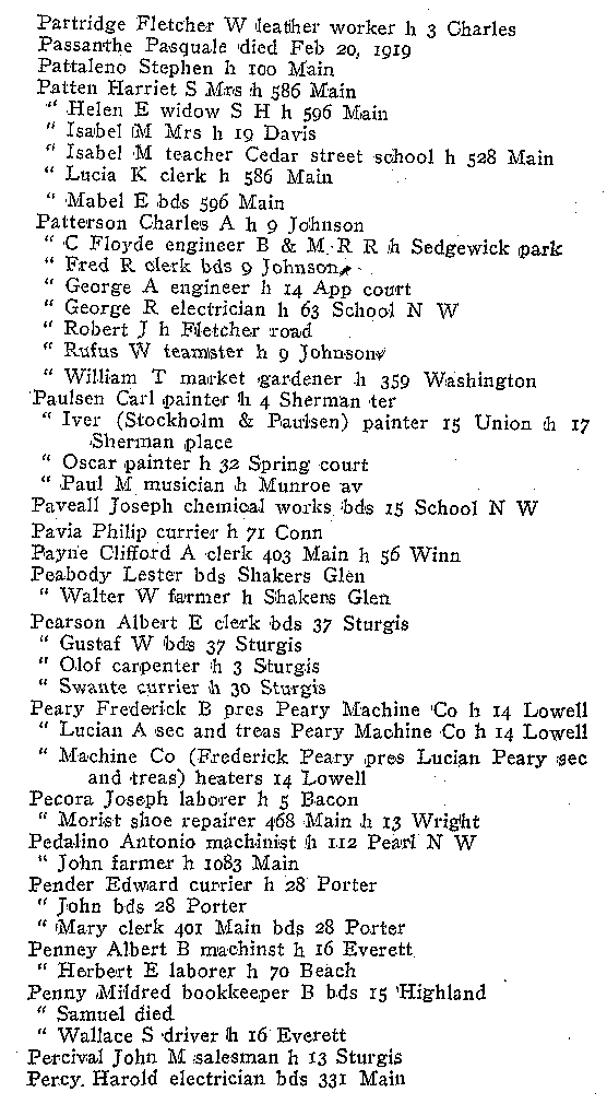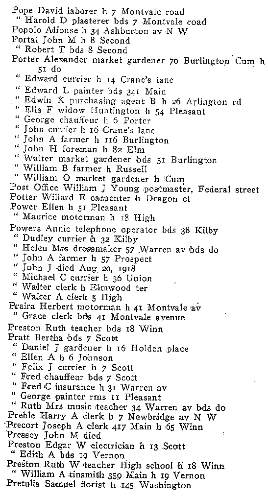 WOBURN CITY DIRECTORY 1919 FOR NAMES P