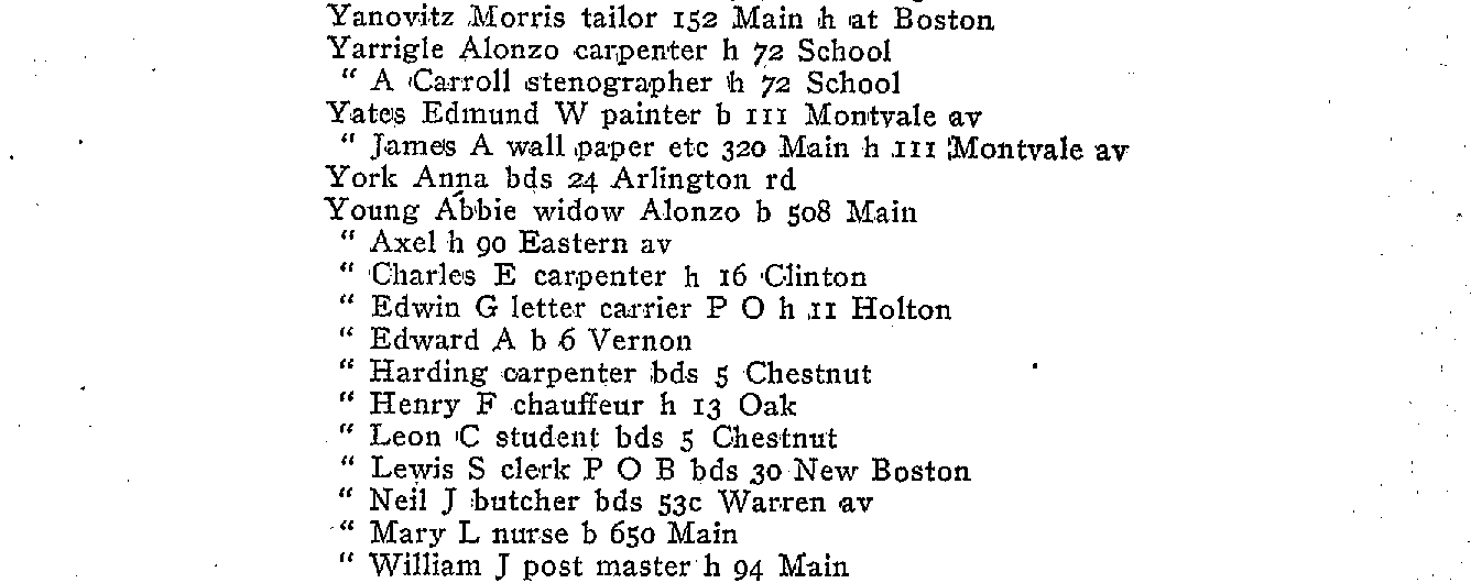 WOBURN CITY DIRECTORY 1919 FOR NAMES Y