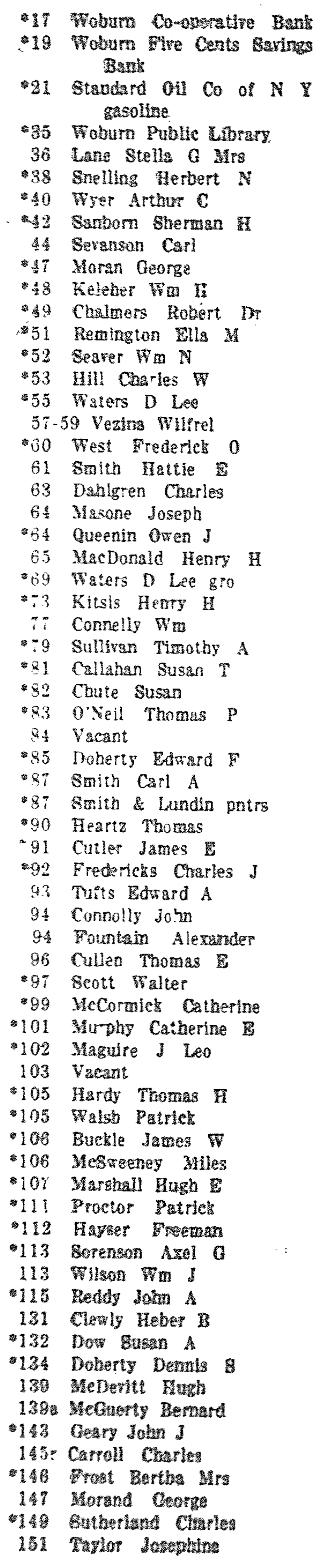 WOBURN HOUSE DIRECTORY