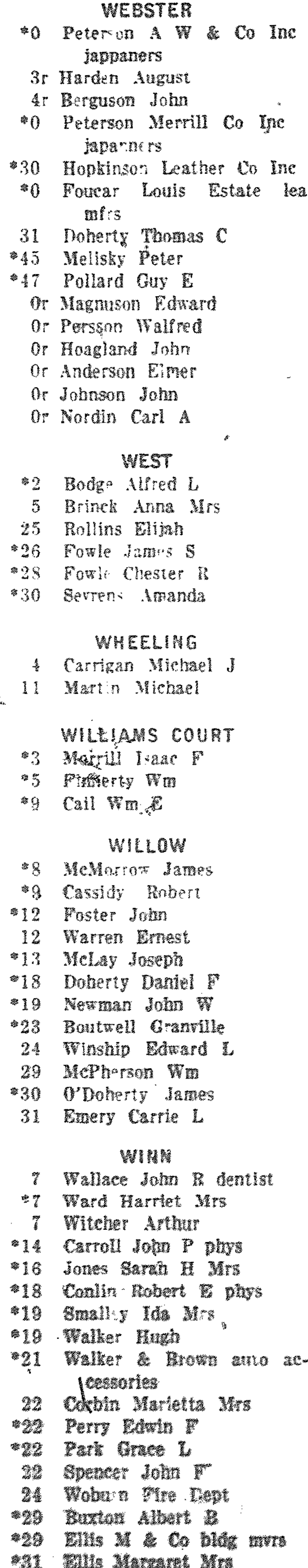 WOBURN HOUSE DIRECTORY